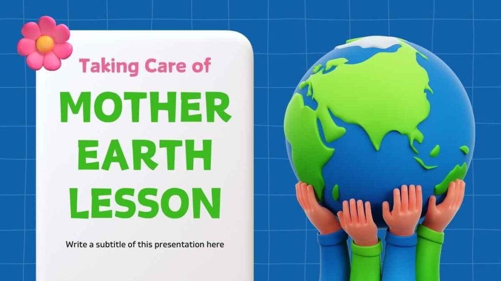 PowerPoint Google Slides 1 16:9 Lección 3D tierna para cuidar la Madre Tierra en Diapositivas Descargar 3DActualApto para Niños