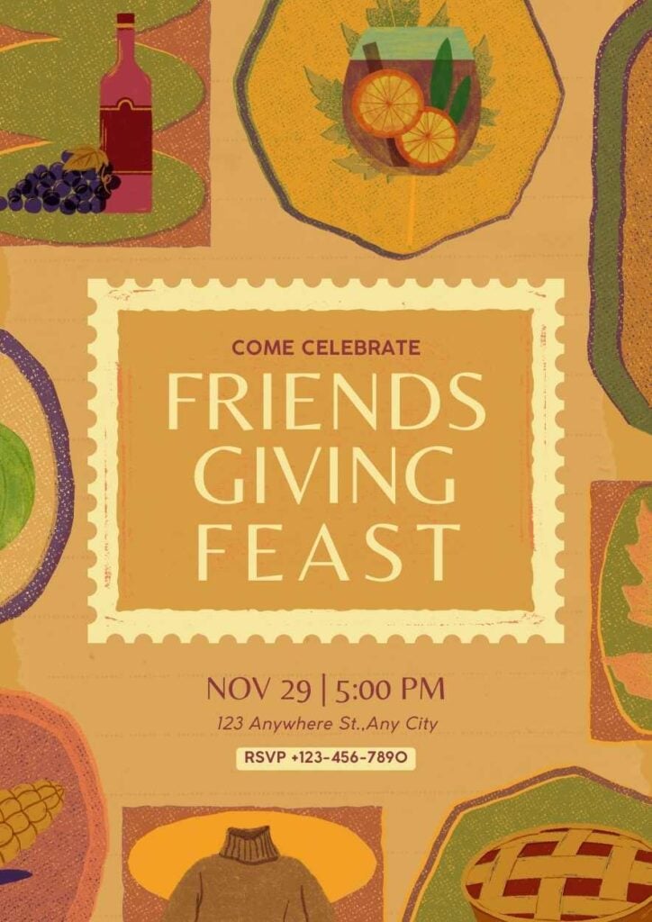 PowerPoint Google Slides 1 A4 Invitaciones Vintage para Friendsgiving en Diapositivas Descargar AcuarelaCálidoCreativo