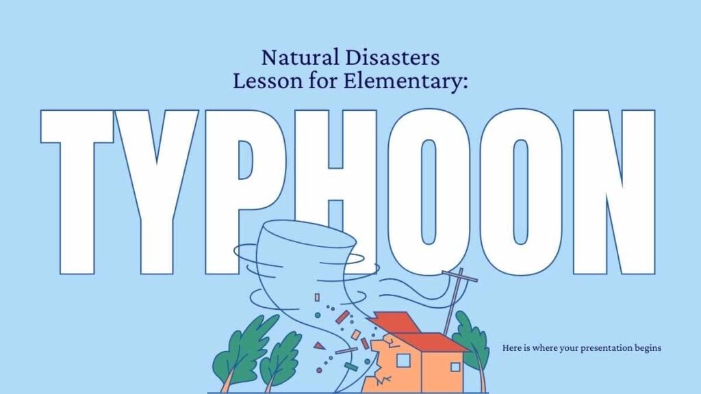 PowerPoint Google Slides 1 16:9 Lección Minimalista de Desastres Naturales: Tifón en Diapositivas Descargar AzulColor sólidoIlustradas