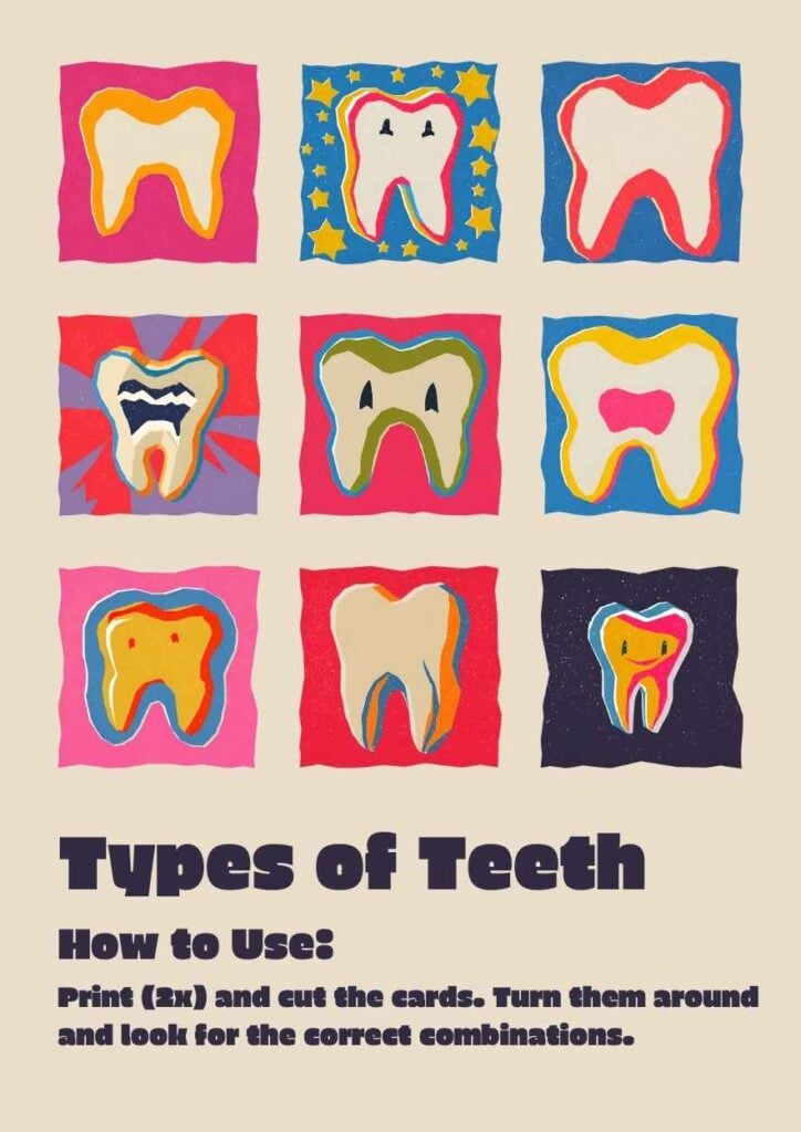PowerPoint Google Slides 1 A4 Hoja de Trabajo de Juego de Memoria de Dientes Ilustrada Descargar Apto para NiñosFondosIlustradas