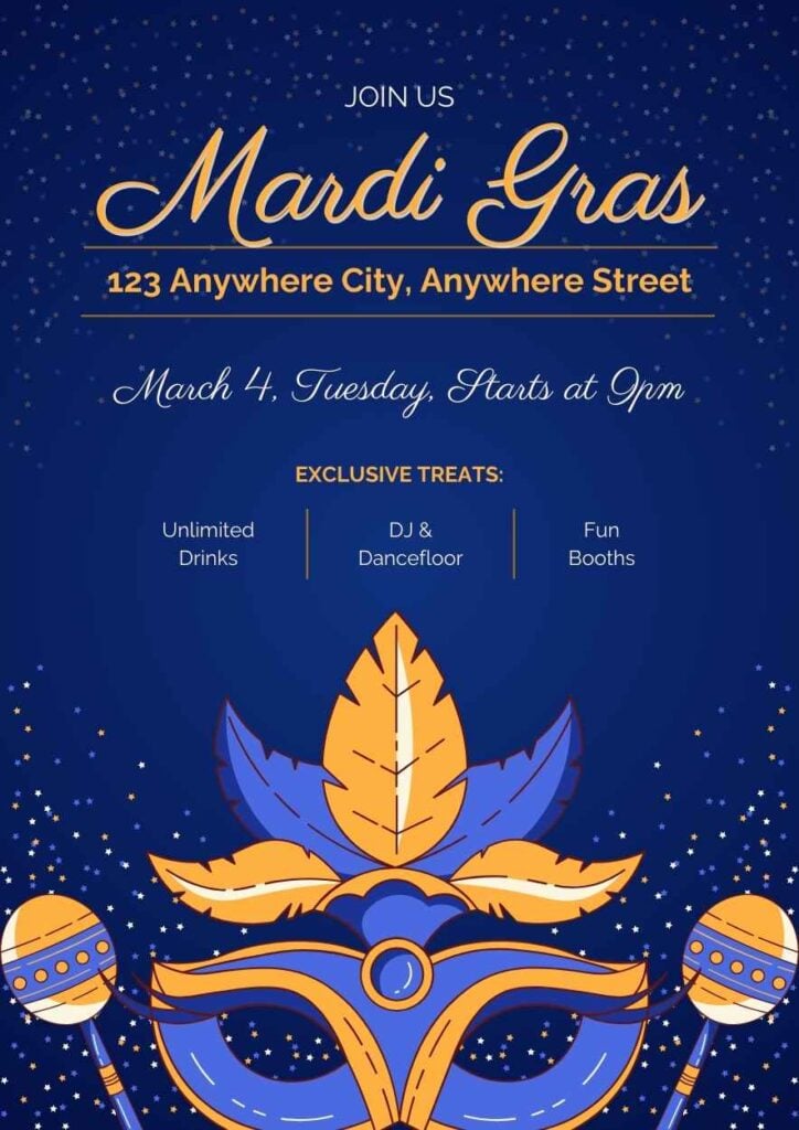 PowerPoint Google Slides 1 A4 Invitación ilustrada de Mardi Gras en Diapositivas Descargar 3DAudazAzul