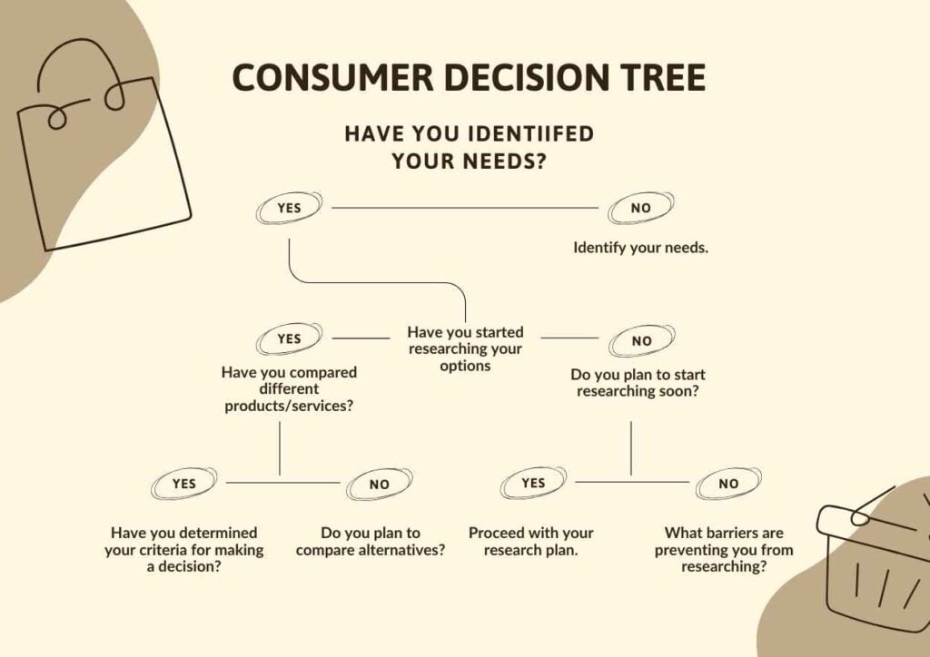 PowerPoint Google Slides 1 A4 Infografías estéticas de árbol de decisión del consumidor en Diapositivas Descargar BeigeEstilo estéticoGarabatos