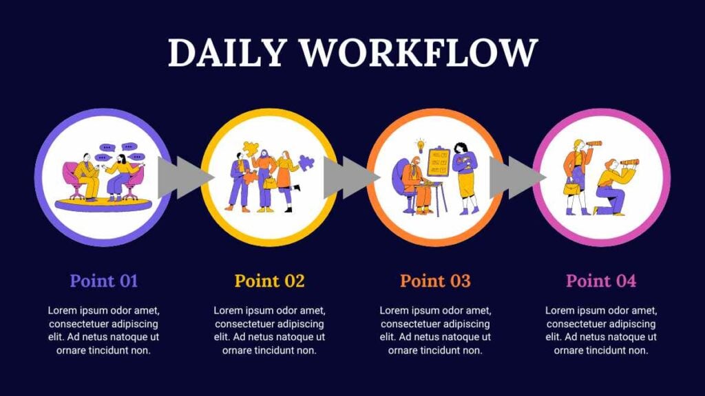 PowerPoint Google Slides 1 16:9 Flujo de Trabajo Diario Moderno en Infografía Descargar EsencialLuminosoCorporativo