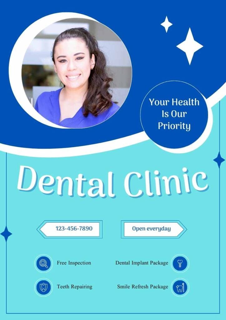 PowerPoint Google Slides 1 A4 Póster Simple para Clínica Dental en Diapositivas Descargar AzulGeométricoIlustradas