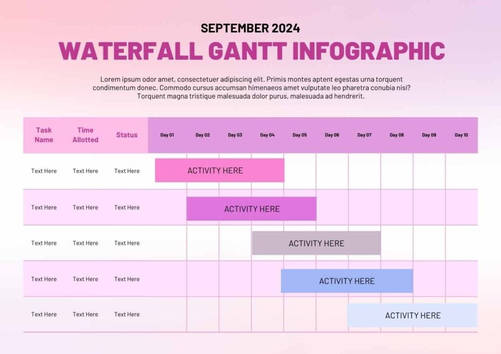 PowerPoint Google Slides 1 A4 Infografía de Gantt en Cascada Pastel Descargar EsencialCorporativoDegradado