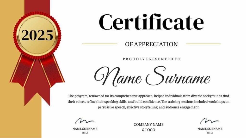 PowerPoint Google Slides 1 16:9 Certificados de Agradecimiento Básicos en Diapositivas Descargar CorporativoEleganteGeométrico