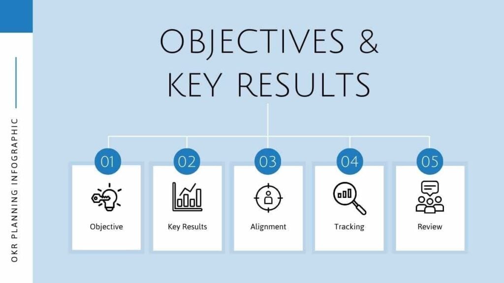 PowerPoint Google Slides 1 16:9 Planificador profesional simple de OKR en Infografía Descargar ActualAzulCorporativo
