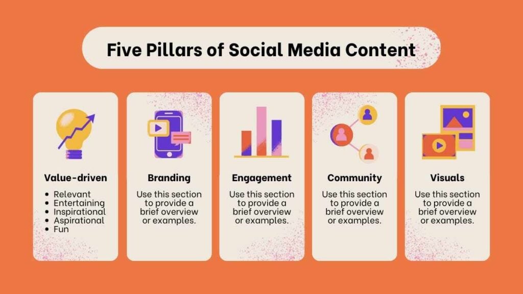 PowerPoint Google Slides 1 16:9 5 pilares del contenido para redes sociales en infografía Descargar ColoridoIlustradasNaranja