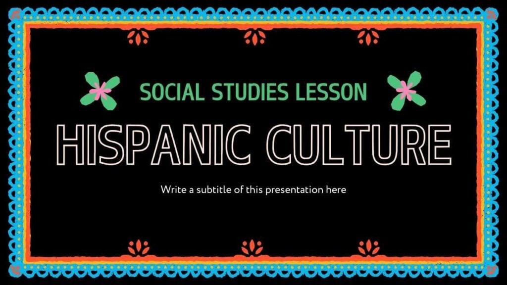 PowerPoint Google Slides 1 16:9 Lección Colorida de Estudios Sociales: Cultura Hispana en Diapositivas Descargar MulticolorNegroNeón