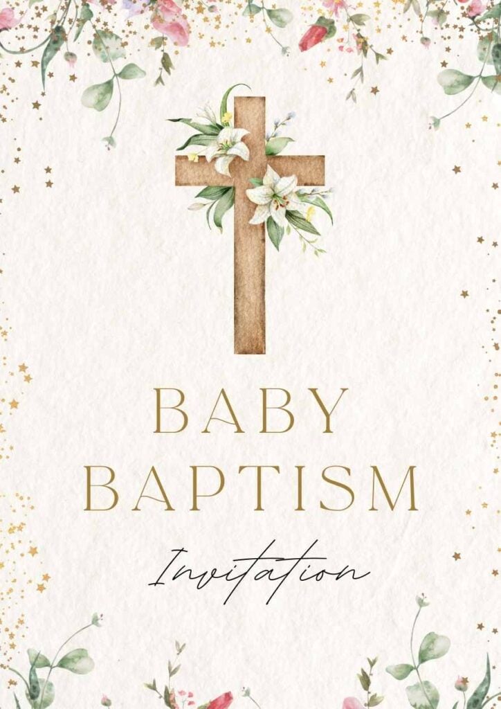 PowerPoint Google Slides 1 A4 Invitación Elegante para Bautizo de Bebé en Diapositivas Descargar BeigeBonitasElegante