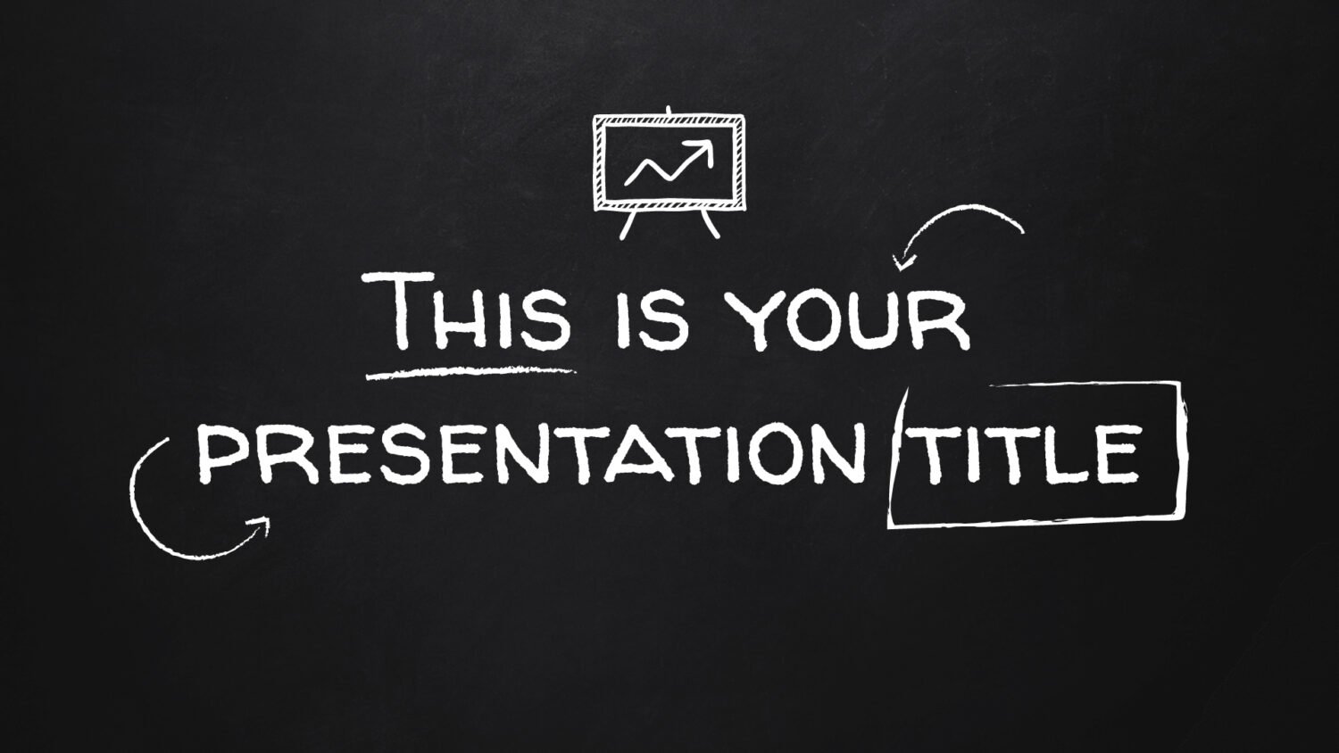 Dale a tu presentación ese aire de aula clásica con un fondo de pizarra oscura y textura realista. La tipografía y los íconos con estilo dibujado a mano, en blanco, hacen que tus ideas se lean con claridad y se vean con personalidad.