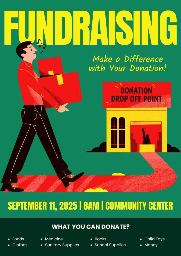 PowerPoint Google Slides 1 A4 Poster Penggalangan Dana Ilustratif dalam Poster Download HijauIlustrasiMerah