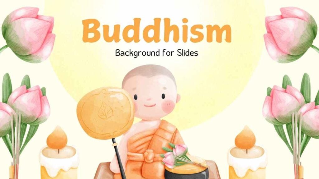 PowerPoint Google Slides 1 16:9 Latar Buddhisme Ilustratif Imut Warna-Warni dalam Slide Download BackgroundCantikColorful