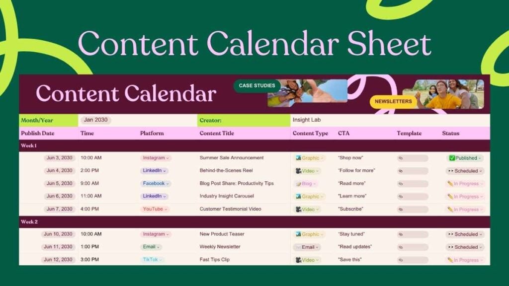 무료 Canva Sheets, Excel, Google Sheets 템플릿