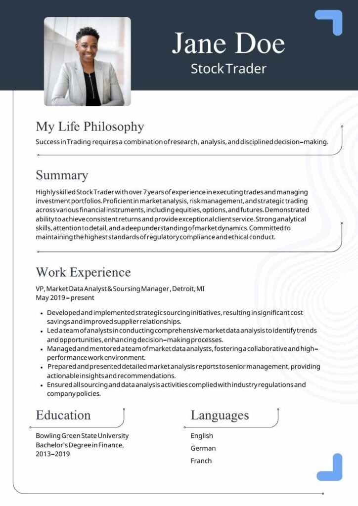 PowerPoint Google Slides 1 A4 Currículo Básico de Especialista em Dados do Mercado de Ações em Slides Download BrancoMinimalistaCurrículo