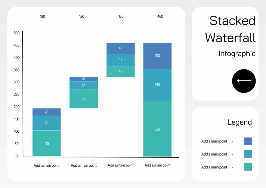 PowerPoint Google Slides 1 A4 Infográfico de cascata com barras empilhadas em Slides Download BásicoCorporativoMinimalista