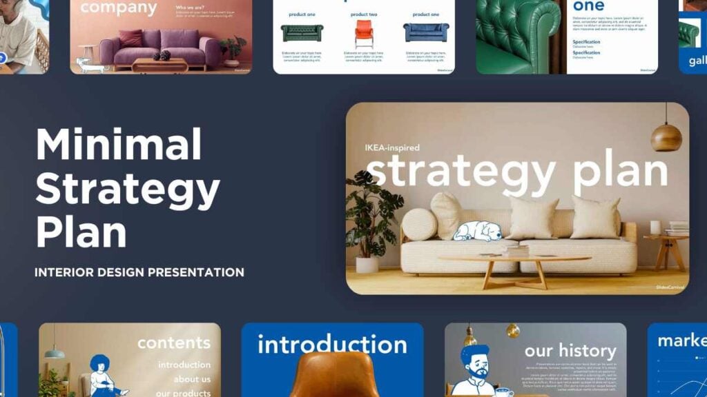 PowerPoint Google Slides 1 16:9 Plano Estratégico Moderno Inspirado na IKEA em Slides Download EstéticaFundosIlustrado