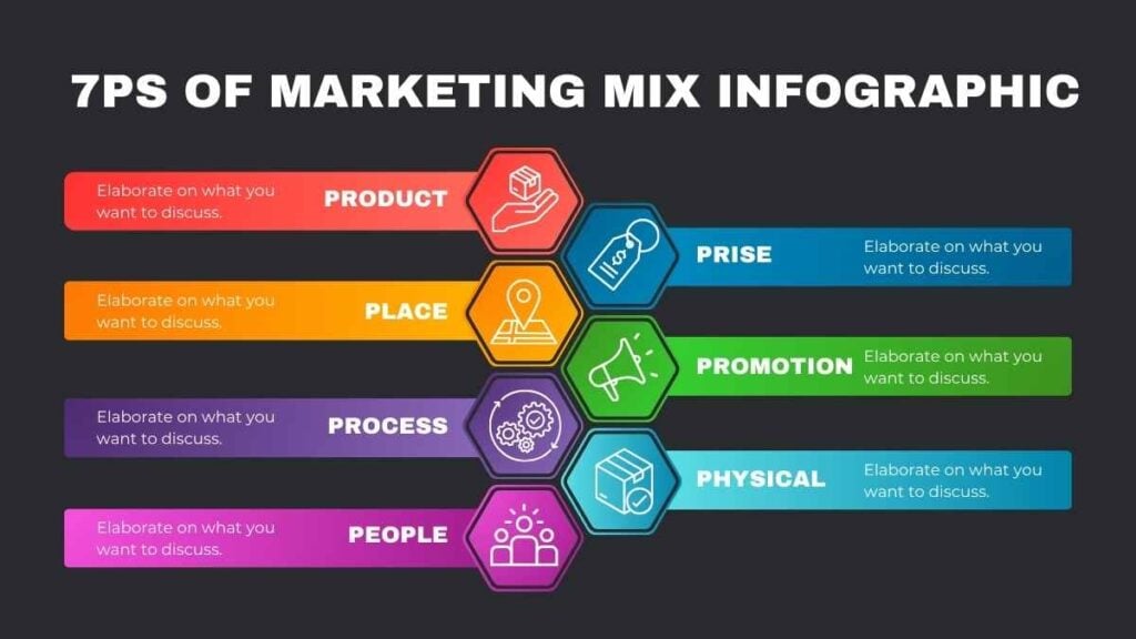 PowerPoint Google Slides 1 16:9 7Ps do mix de marketing em infográfico em slides Download 3DColoridosEscuro