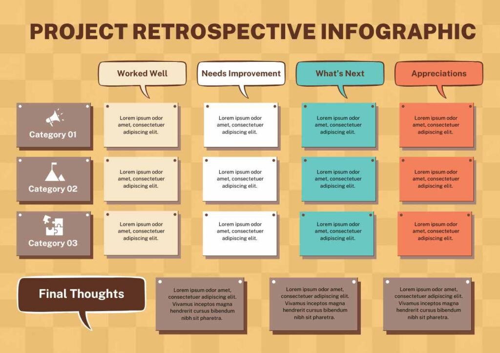 PowerPoint Google Slides 1 A4 Retrospectiva de Projeto Retrô em Infográfico Download AmareloRetrôSimples