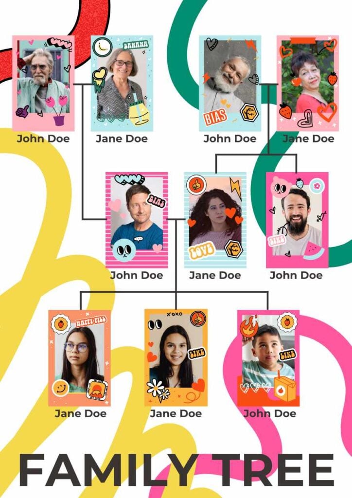 PowerPoint Google Slides 1 A4 Árvore Genealógica de Família Mista Fofa em Slides Download ColoridosCriativoGeométrico