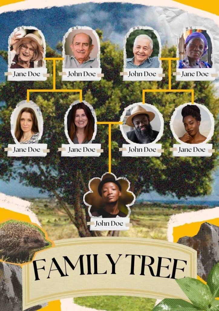 PowerPoint Google Slides 1 A4 Pacote de infográficos de árvore genealógica em slides Download ColagemColoridosPapel