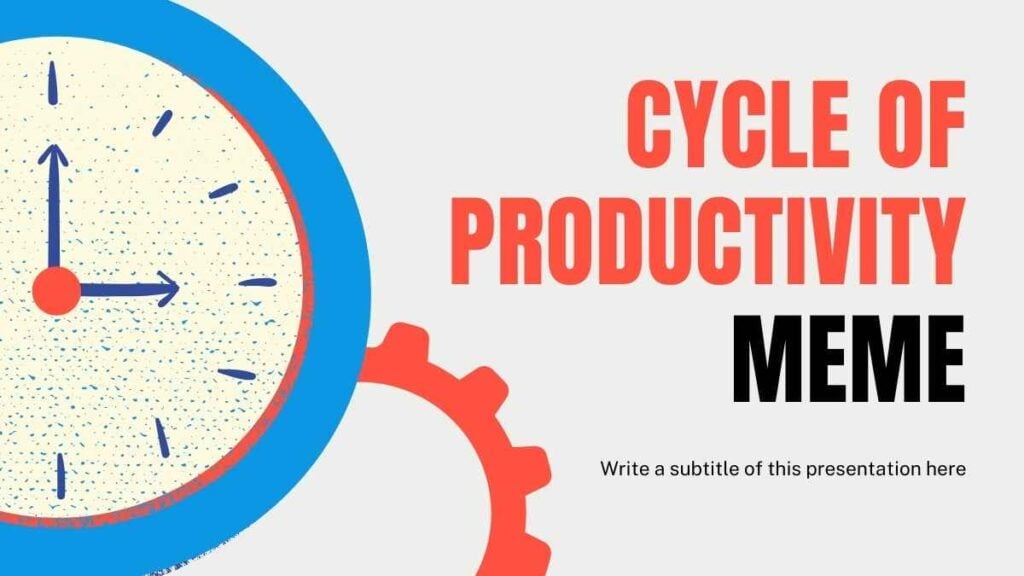 PowerPoint Google Slides 1 16:9 Ciclo de Produtividade com Meme em Infográfico Download CinzaColoridosCriativo