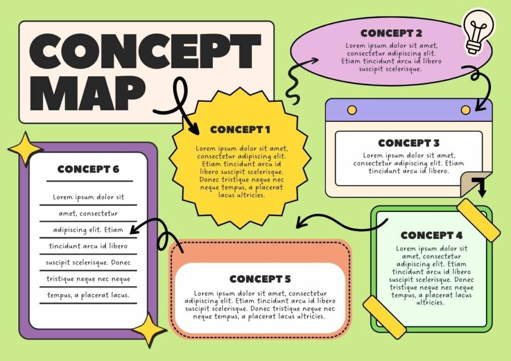 PowerPoint Google Slides 1 A4 Mapa Conceitual Geométrico em Slides Infográficos Download ColoridosPastelVerde