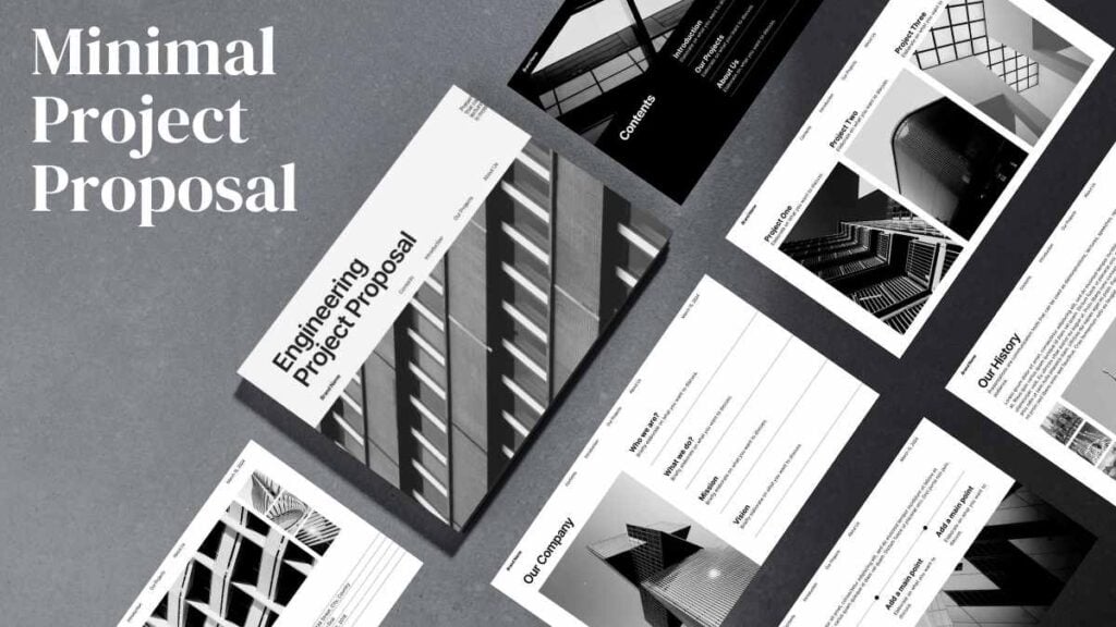 PowerPoint Google Slides 1 16:9 Proposta de Projeto de Engenharia Simples em Slides Download BrancoCorporativoMinimalista