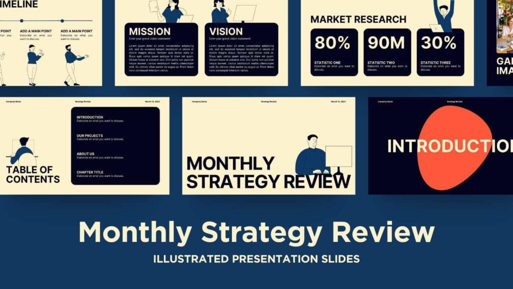 PowerPoint Google Slides 1 16:9 Revisão Mensal de Estratégia Amarela em Slides Download AmareloCorporativoIlustrado