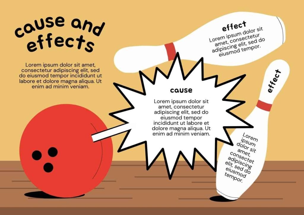 PowerPoint Google Slides 1 A4 Slides Infográficos Ilustrados de Causa e Efeito Download AmareloCriativoIlustrado