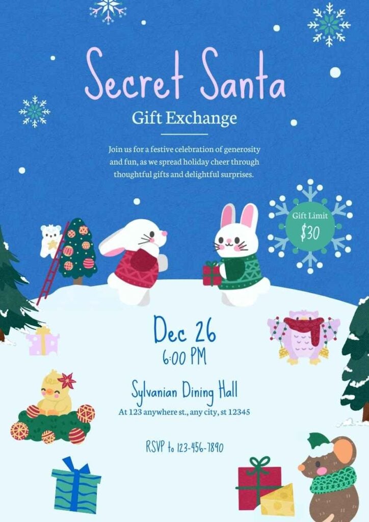 PowerPoint Google Slides 1 A4 Flyer Fofo de Festa de Amigo Secreto em Slides Download AzulCartoonCriativo