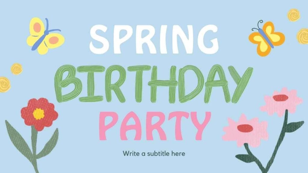 PowerPoint Google Slides 1 16:9 Festa de aniversário floral em tons pastel em Slides Download BonitosColagemColoridos