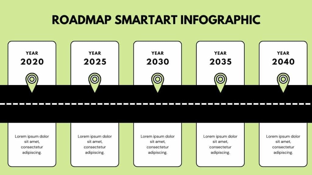 PowerPoint Google Slides 1 16:9 Infográfico de Roadmap SmartArt Simples em Slides Download VerdeFluxo de ProcessoFluxograma