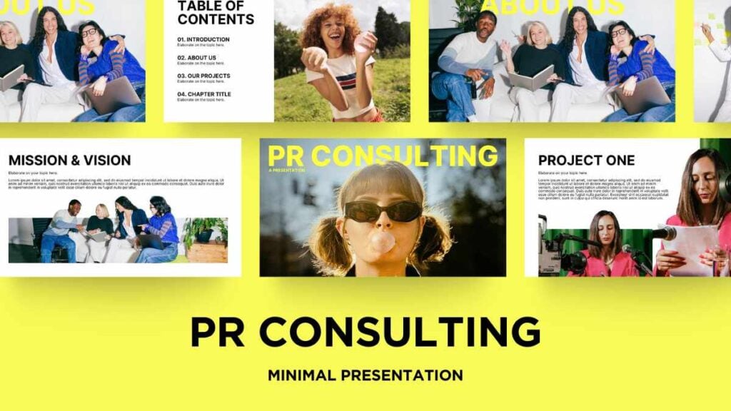 PowerPoint Google Slides 1 16:9 Slides de consultoria de RP com foco em fotos Download CorporativoMinimalistaCampanha