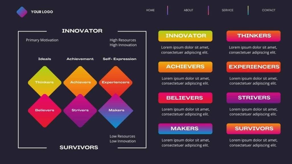 PowerPoint Google Slides 1 16:9 Template Minimalista de Framework VALS em Slides Download EscuroGeométricoGradiente