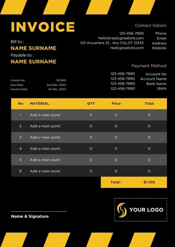 PowerPoint Google Slides 1 A4 Fatura de Construção Minimalista em Slides Download CorporativoModernoPreto