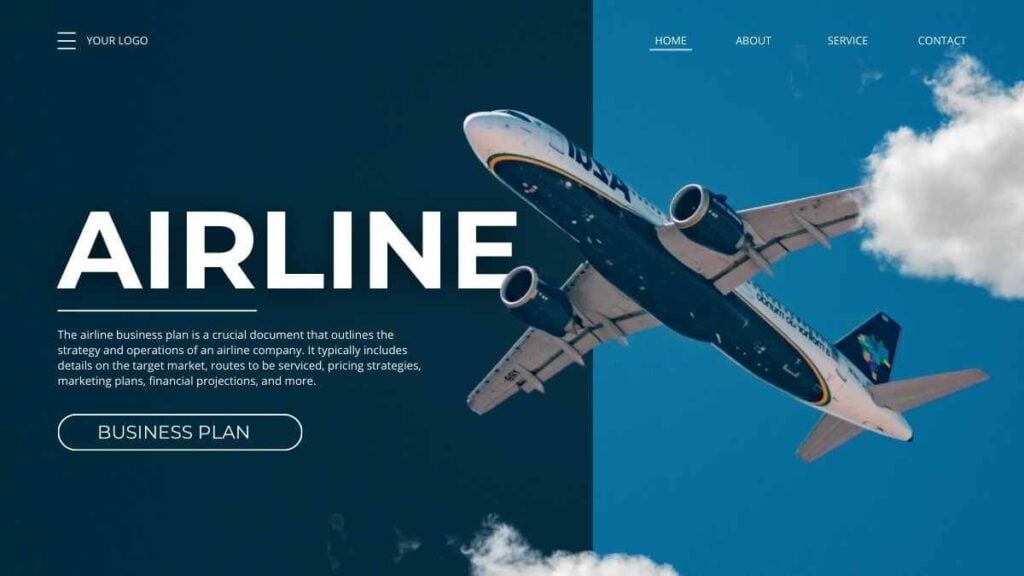 PowerPoint Google Slides 1 16:9 Plano de Negócios de Companhia Aérea Profissional Azul em Slides Download AzulModernoProfissional
